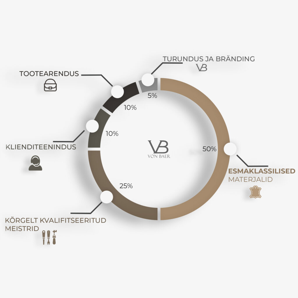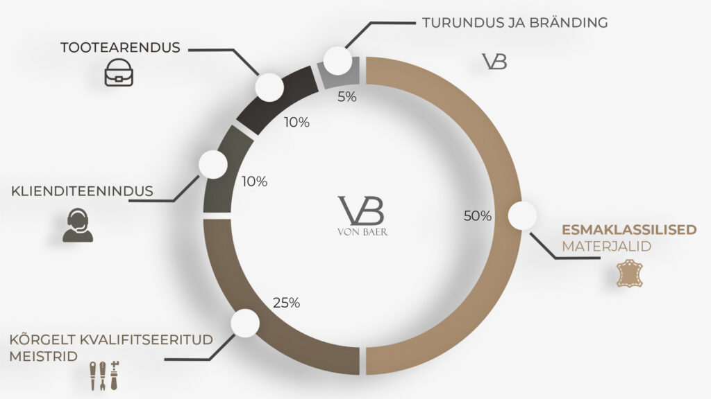 Lisaks praktilisusele, peab iga Von Baeri toode vastama meie ootustele – toode peab olema unikaalne ja ajatu. Meie tooted on disainitud kestma kaua, pakkudes ajatut stiili. Meisterlik käsitöö ja kvaliteetsed materjalid aitavad kaasa nende pikaealisusele. Paneme rõhku ka sellele, et meie tootmisprotsessides kasutatakse kvaliteetseid materjale ja koostööpartnerid järgivad vastutustundlikke tootmisstandardeid.