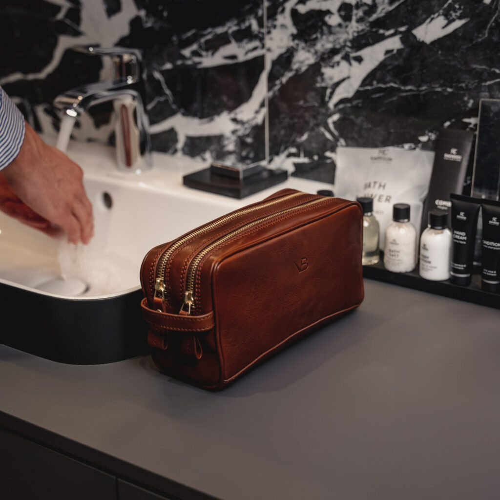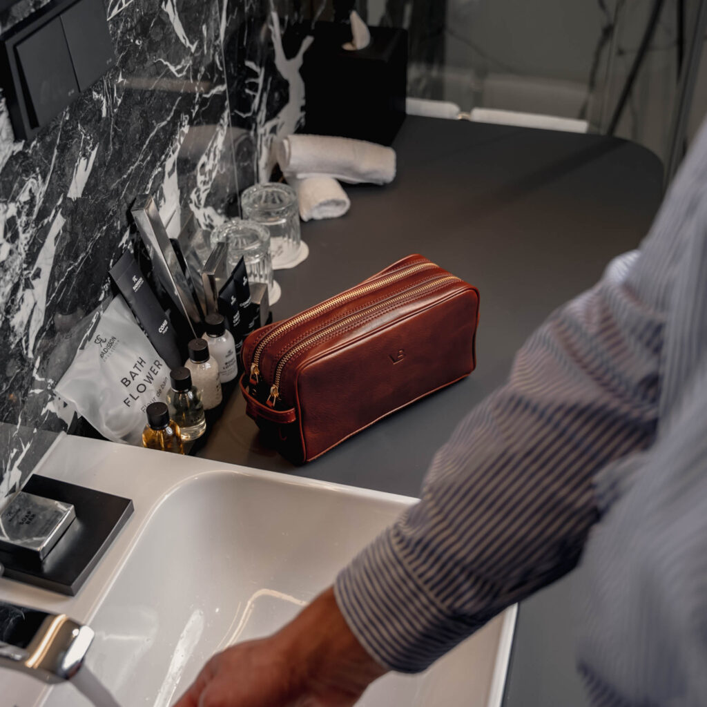 Kütkestava välimusega kosmeetikakott ehk hügieenitarvete kott peidab endas kahte lahtrit, mis kõik vajalikud hügieeni- ja ilutarbed hästi ära mahutavad. Superior on käsitsi valmistatud ehtsast taimpargitud Premium Cuoio Superiore veisenahast, mis annab kotile iseloomuliku kvaliteetse nahatekstuuri. Kotti avades leiate selle sisemust katva meeldiva kergeltpuhastatava voodri, millele lisavad elegantsi messingist detailid.